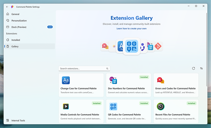 We're launching a brand new Extensions Gallery for Command Palette in PowerToys 0.99 (roughly 2 weeks from now). The gallery will make it super easy for users to discover, browse, and install extensions β whether they're on winget, the Microsoft Store, or GitHub.